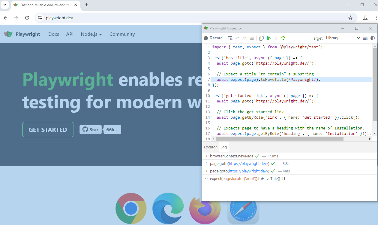 | npx playwright test –debug | Runs the tests in debug mode. |